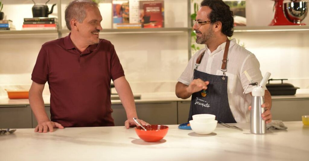 E eu – que acompanho essa história de perto, texto a texto, garfada a garfada – posso garantir: ele é um dos maiores talentos da nossa gastronomia. Chef, pesquisador e caçador de sabores, vocês vão conhecer o maestro das texturas de um Brasil sem igual. Dessa vivência, ensina a receita de crudo de carne de sol com maxixe.