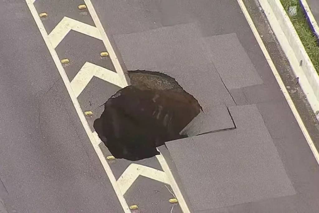 De acordo com imagens da TV Globo, no fundo do buraco há muita água e terra. Pelas imagens, é possível ver que, no local, o asfalto já havia sido recapeado, porque apresenta uma cor mais escura que no restante.