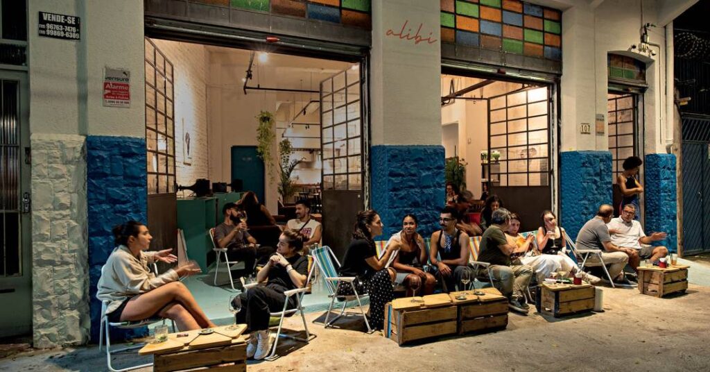 O primeiro ponto visitado para montar o Alibi, um salão de pé-direito alto e um tanto impessoal, acabou ficando definitivo. Encontra-se na confluência de Barra Funda, Santa Cecília e Campos Elíseos e mantém o despojamento comum à região — vide as abomináveis cadeiras de praia na fachada —, assim como a animação — uma vitrola recebe DJs vez ou outra.