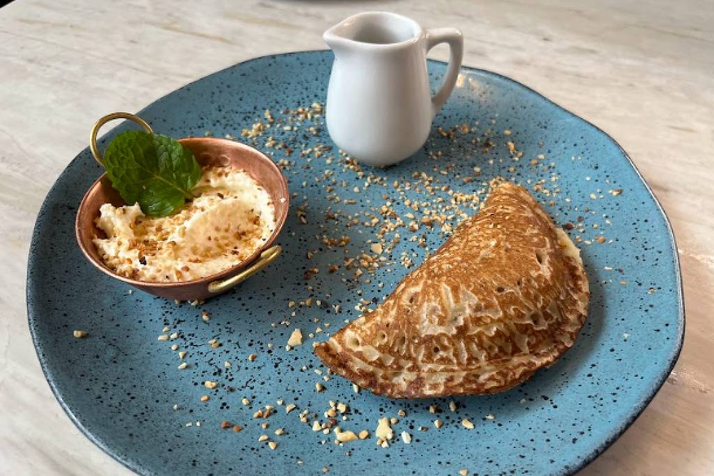 Seria uma pena deixar de provar o ataif fartamente recheado com nozes trituradas (R$ 30). É uma alegria notar que, quando regada com o caldo de flor de laranjeira, a massa parece ganhar leveza. Mais ainda quando somada ao creme de nata que a acompanha. Ele parece um chantili muitíssimo delicado. Alegra o paladar e derrete rapidamente na língua, pedindo mais uma bocada.