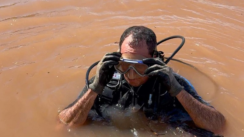 Equipe de mergulhadores removeu detritos, como garrafas plásticas, sacolas e madeira que se alojaram na estrutura da captação da ETA Imigrantes