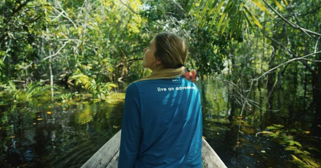 Uma imersão profunda na floresta. Para aquelas que buscam uma imersão na natureza, mas sem abrir mão do conforto, a experiência em um lodge amazônico é o equilíbrio perfeito. As viajantes exploram trilhas e rios com guias especializados, vivenciando a biodiversidade com tranquilidade e estrutura de excelência. Veja 13 opções de hotéis de selva na Amazônia.