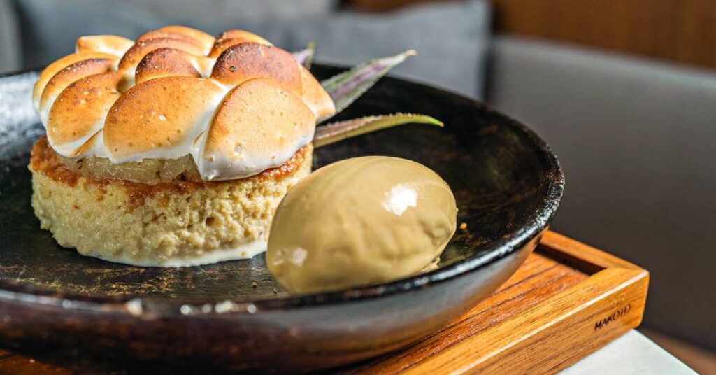 Makoto Okuwa > A casa japonesa com matriz em Miami tem um surpreendente sorvete de shoyu assentado em farofinha crocante e junto de um bolo esponja de rapadura com abacaxi confitado e coberto por merengue maçaricado (R$ 39,00). Shopping Cidade Jardim, telefone 91261-0274. Tem acessibilidade; Shops Jardins, telefone 95689-7515. Tem acessibilidade. $$
