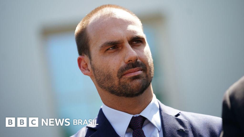 O jornal britânico acrescenta que adversários no Brasil acusam Eduardo Bolsonaro de antipatriotismo e que sua campanha provocou as tarifas que prejudicarão as exportações e levarão à perda de empregos.