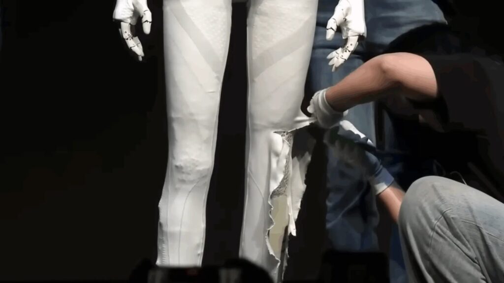 Para encerrar os boatos, o fundador He Xiaopeng, chamou seus engenheiros ao palco do XPENG AI Day 2025 para cortarem a “pele” de fibra ao vivo, exibindo a estrutura mecânica interna. O momento viralizou nas redes sociais pelo impacto visual e pelo fim da polêmica.