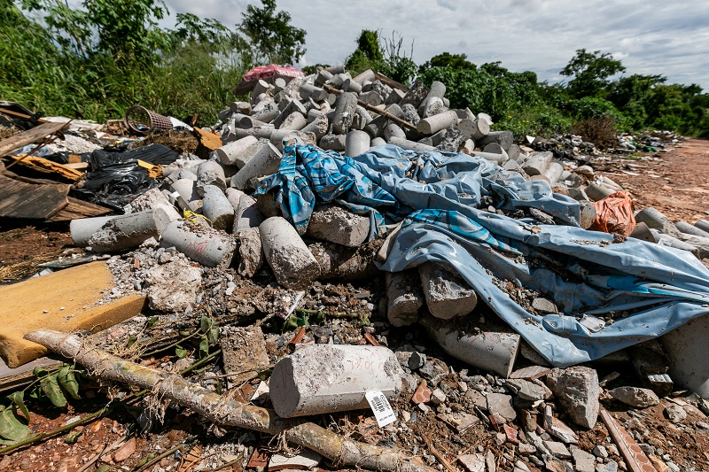 Fiscais da Prefeitura de Cuiabá identificaram nesta sexta-feira (28) uma empresa privada que descartou, de forma irregular, amostras de concreto. O fato foi registrado em um terreno no bairro Jardim Imperial.