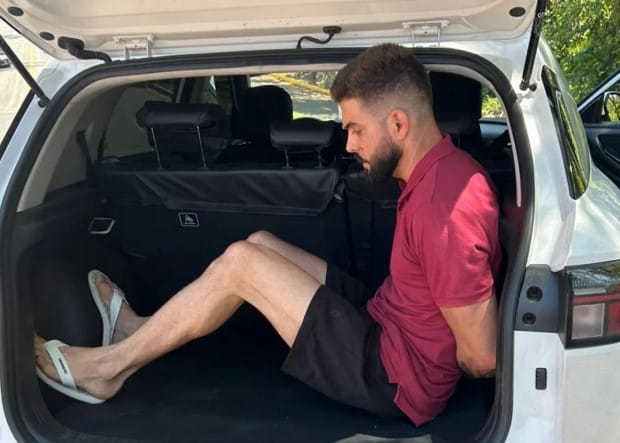 O empresário Guilherme Vinícius Cervo, de 32 anos flagrado em vídeo espancando a ex-companheira em via pública em Lucas do Rio Verde (MT), foi preso na manhã desta segunda-feira (29/9). Ele foi localizado por policiais em uma área de mata, no município vizinho de Sorriso, onde estava escondido desde o episódio de agressão.