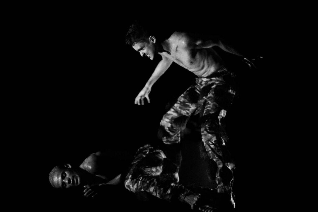 “Esse é o primeiro trabalho do núcleo em que buscamos dançar com as palavras. Fazer com que a gente possa, de alguma maneira, dançar com a voz e dar carne às palavras”, diz o diretor Thiago Abel, autor da pesquisa “Arriar o Butô em Sete Encruzilhadas: Micropolíticas do Corpo”. Afinal, a voz é um recurso comum ao teatro, e não ao butô, pautado nos movimentos que emergem do corpo.