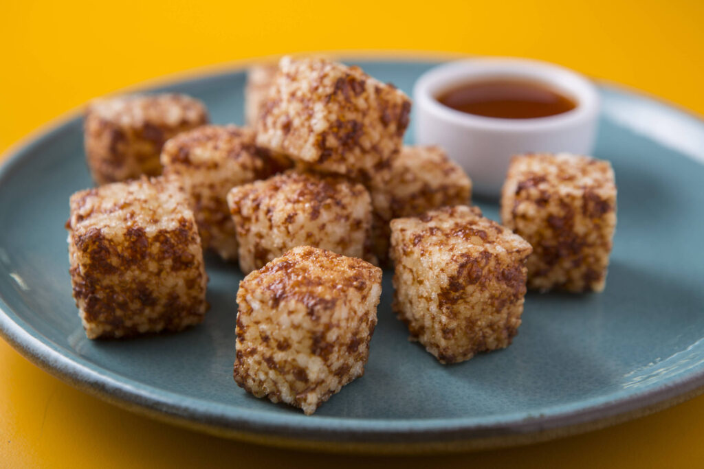 - Corte em cubos e frite por imersão a 170°C até dourar. Sirva com molho de pimenta agridoce