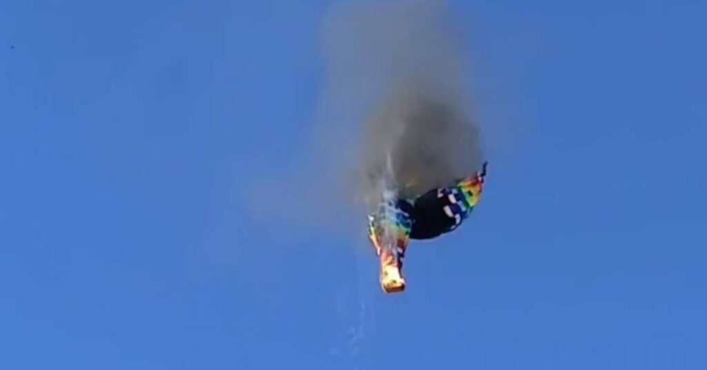 Diante da propagação das chamas, o piloto orientou os passageiros a se agacharem e pularem assim que o cesto tocasse o solo. Parte do grupo conseguiu saltar. Mas com a redução do peso, o balão voltou a subir – ainda em chamas – com passageiros a bordo. A queda aconteceu logo em seguida.