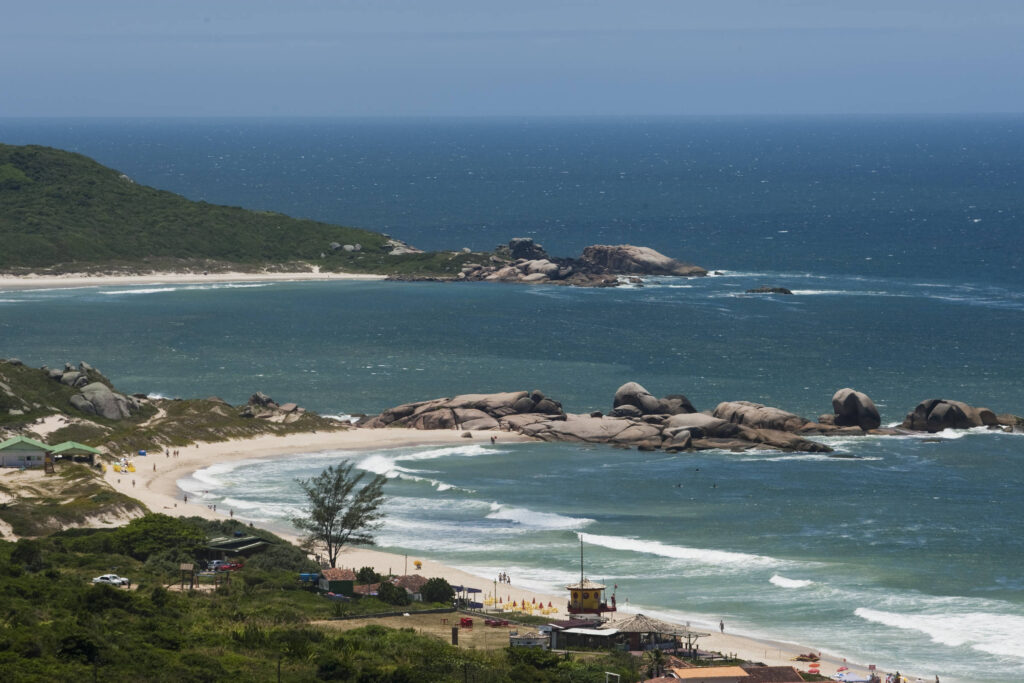 No extremo norte, o cenário muda. A famosa praia de Jurerê Internacional concentra o luxo da cidade, com casas imponentes e seus jardins bem-cuidados, livres de muros. A orla conta com diversos “beach clubs” e é voltada para quem procura badalação, especialmente na alta temporada. A praia tem poucas ondas, boa faixa de areia e é bonita —o que está longe de ser raro em Florianópolis. Perto dali há opções mais interessantes e menos pretensiosas, como as praias de Ingleses do Rio Vermelho (conhecido como Zinga, o segundo bairro mais populoso da cidade, perdendo apenas para o centro) e do Santinho.