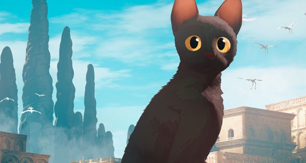 Antes de entender a cena pós-créditos, vamos recapitular os principais acontecimentos de Flow. O protagonista da animação é um gato preto domesticado que agora tenta sobreviver sozinho e perdido.