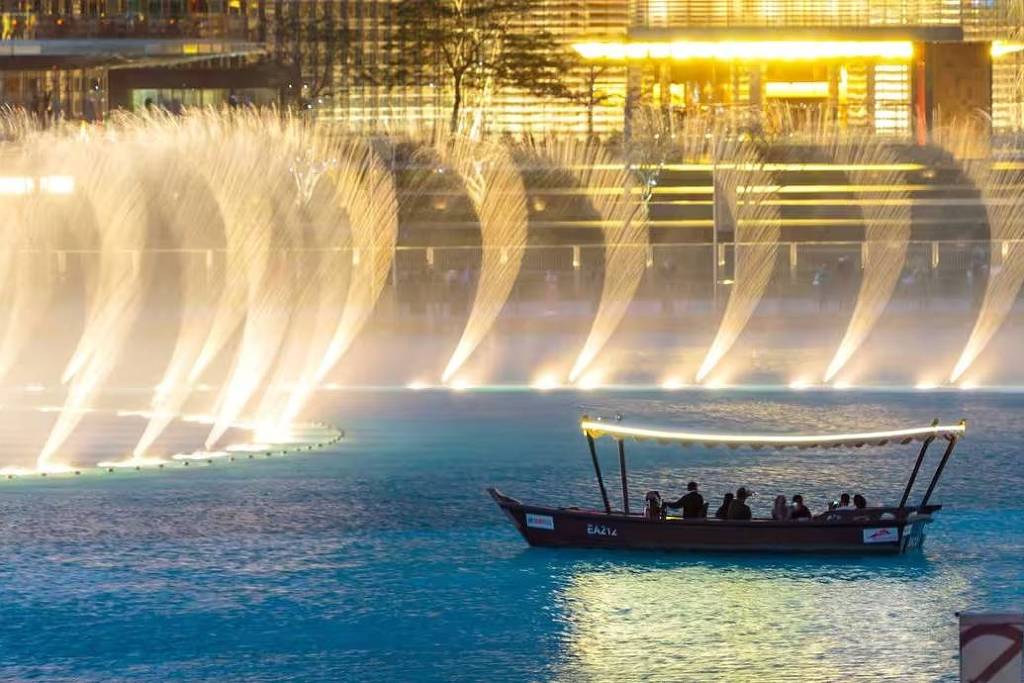 Localizada no centro de Dubai, em frente ao arranha-céu Burj Khalifa, a fonte faz parte do Dubai Mall, um dos maiores shoppings do planeta. O show das águas acontece diariamente entre 18h e 23h, com apresentações que misturam luzes, música e jatos d’água que se estendem por uma área superior à de dois campos de futebol.