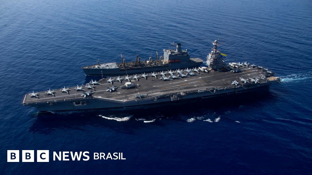 O porta-aviões USS Gerald R. Ford, o maior da Marinha americana, estava a cerca de 120km ao sul da República Dominicana em 27/11, aproximadamente 700km da costa venezuelana.