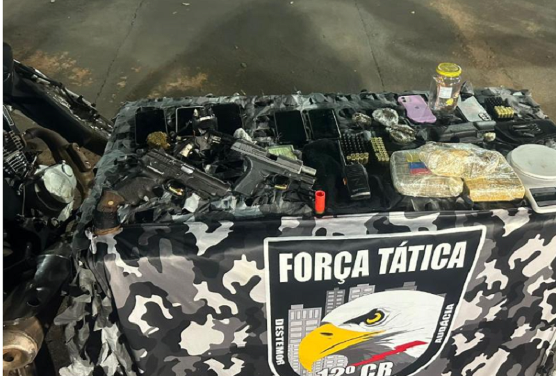 Com o criminoso, a equipe apreendeu uma pistola de calibre .9mm. Dentro da casa, os policiais apreenderam mais de 70 munições de diversos calibres, porções de substância análoga à maconha, um rádio comunicador e apetrechos utilizados nos crimes.