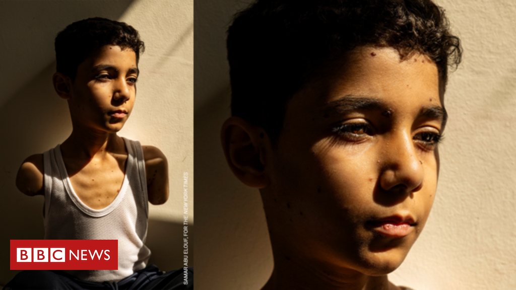 Legenda da foto, A fotografia de Mahmoud Ajjour, tirada por Samar Abu Elouf, ganhou o prêmio World Press Photo 2025