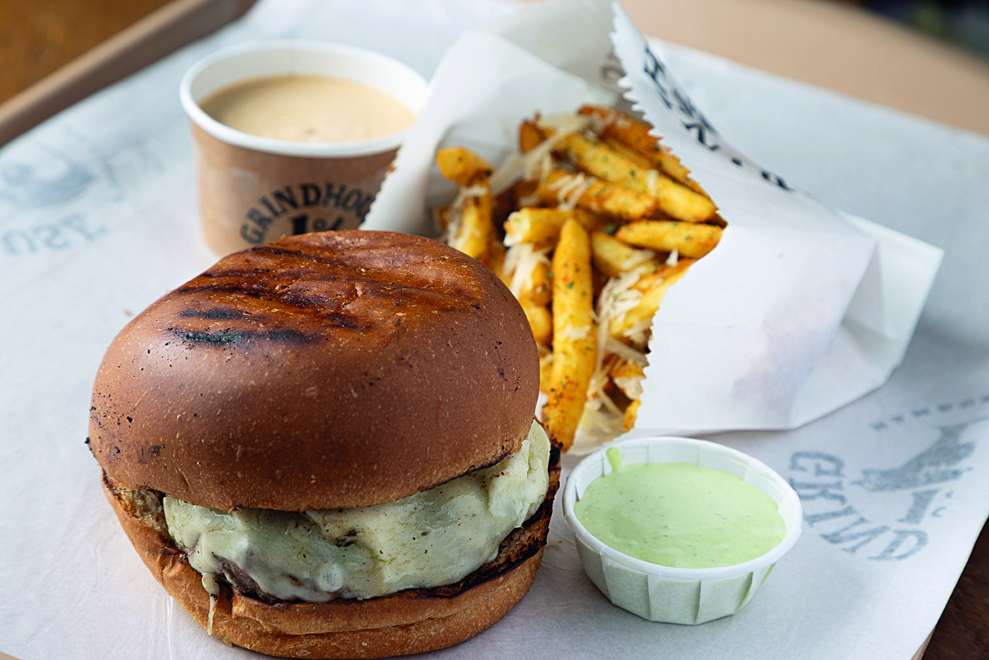 Derivada de uma churrascaria de mesmo nome, o Grindhouse 1%, é mais um projeto de Santiago Roig que fundou, também em Pinheiros, o Underdog em 2012, transformado em La Borratxeria, seis anos depois, e de onde saiu em 2022. Na lanchonete aberta em maio, os pedidos são feitos em totem eletrônico. Mas não acredite que o hambúrguer será expedido com velocidade de um fast-food. Em vez de chapa ou churrasqueira de pedras vulcânicas, usa-se uma grelha a lenha que pode ser vista da calçada. Os bifes de carne moída se tornam recheio de sanduíches quando ficam tostados por fora e vermelhinhos por dentro. Há a possibilidade de solicitar combos. O tradicional (R$ 63,00) inclui o cheeseburger de 90 gramas de carne de peito e capa de contrafilé coberta por requeijão e muçarela no pão brioche junto de fritas com páprica picante, parmesão, alho e salsinha mais maionese de wassabi. O pacote inclui ainda o sorvete cremoso de doce de leite da casa. A burguesa ensalada bacon de sant dá nome a um cheeseburguer de costela de 100 (R$ 44,00) ou 220 gramas (R$ 74,00) coberto por bacon picado, requeijão, queijo americano, picles de pepino, tomate e alface-americana. Opção parruda, tem a intensidade do defumado e sal na medida. Peculiar, o salão tem mesas rústicas de troncos de árvores e bancos com selas de montaria como assentos.