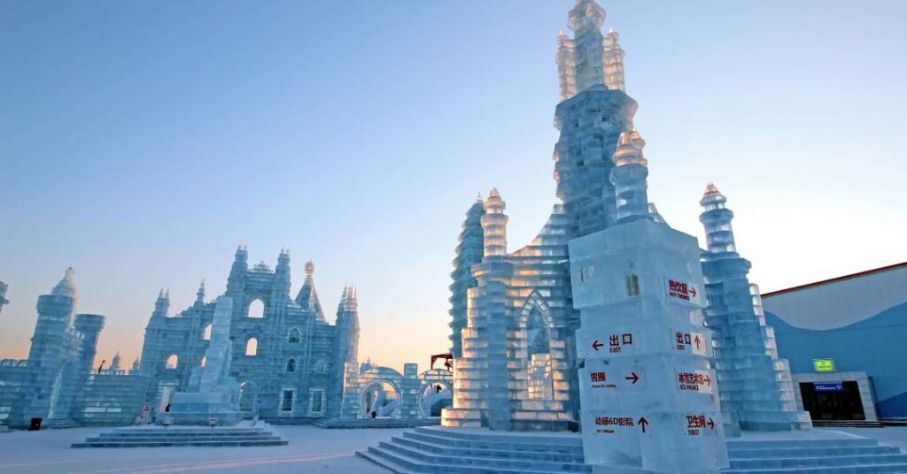 O evento também se estende por parques temáticos dedicados à explorar a arte do frio. Fundado em 1999, a fim de celebrar a chegada do novo milênio, o Harbin Ice and Snow World é uma das principais atrações do Harbin Festival, se destacando por acomodar inúmeras esculturas de gelo monumentais, com uma pegada de “Disneylândia do gelo”.