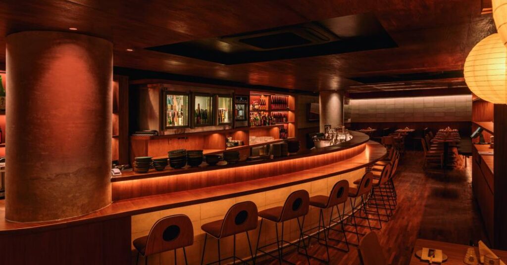 “Abrimos o da Vila Madalena ‘passando o chapéu’ na família, e os arquitetos fomos nós”, relembra Valéria Cedano Hirata, esposa e sócia de Daniel. “O resultado do novo endereço é um lugar mais sofisticado, mas a vibe de izakaya continua.”