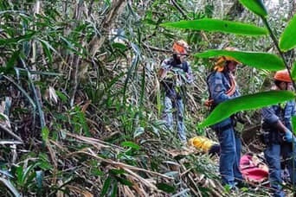 O local é de difícil acesso e fica mais de 200 metros abaixo da área de salto.