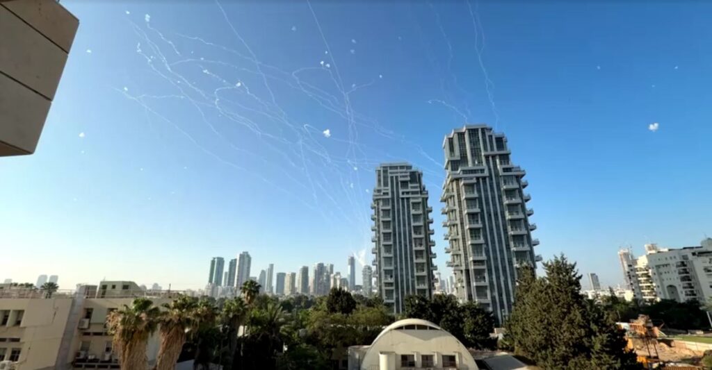 Um vídeo da Reuters mostrou um prédio de vários andares em Tel Aviv que havia sido danificado. Detritos foram encontrados na rua do lado de fora e os socorristas isolaram parte da área.
