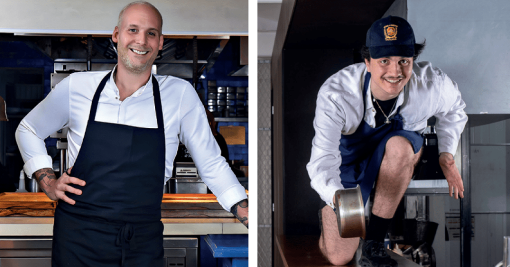 De um lado, o Chef Revelação por VEJA SÃO PAULO COMER & BEBER 2025, Iago Jacomussi; do outro, Luiz Filipe Souza, que obteve o mesmo título em 2018. Juntos, eles elaboram um menu no Jacó, casa de Iago na Vila Madalena.