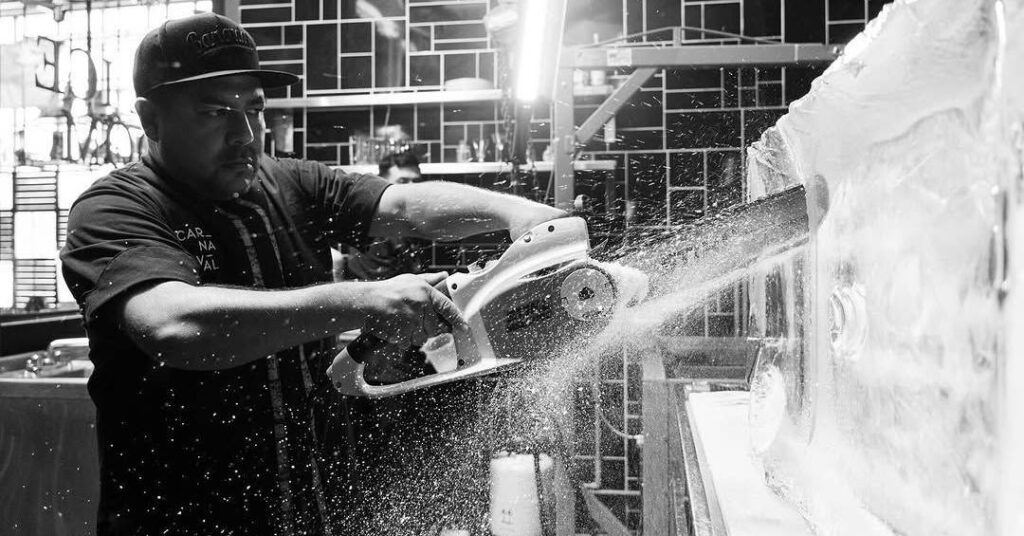 Chamado de Iceman, o “ice chef” é especializado em gelo — ingrediente fundamental na coquetelaria —, e foi convidado por uma marca do produto, a Tuaq, para fazer drinques (R$ 49,00 cada um).