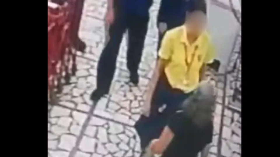 Imagens das câmeras de segurança do estabelecimento, obtidas pelo site, mostram o momento em que a idosa passou pela funcionária em um dos corredores e deu uma palmada nela.