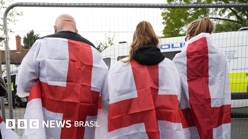 Há alguns dias, cerca de 50 manifestantes anti-imigração carregaram bandeiras da Inglaterra e do Reino Unido pelo centro da cidade de Bristol, no sudoeste do país.