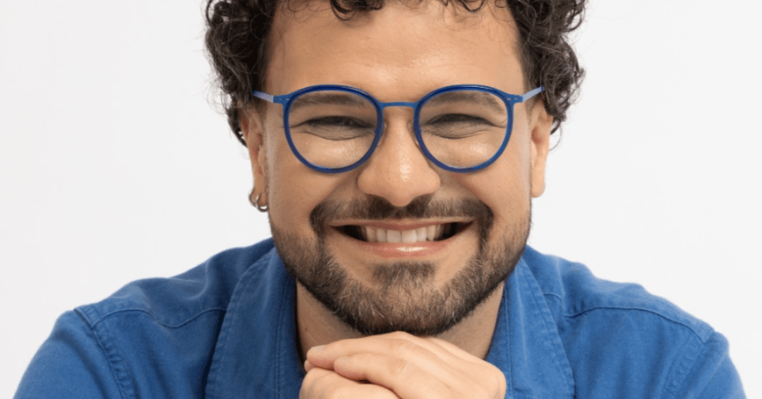 Imagem de uma pessoa em frente ao um painel com um leão e o logo da Receita Federal.