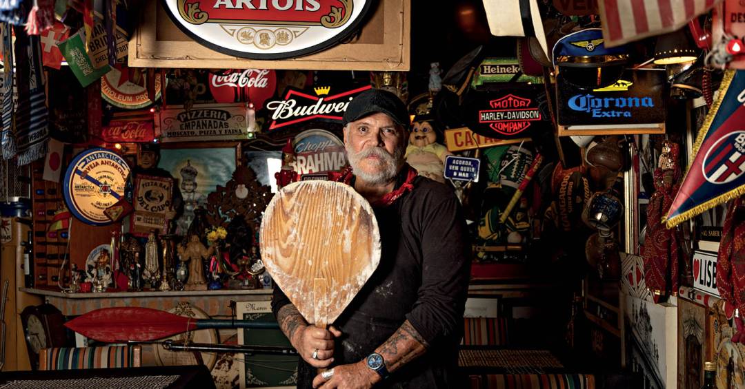 Pizzas em ambiente repleto de objetos antigos: a curiosa Villa del Capo