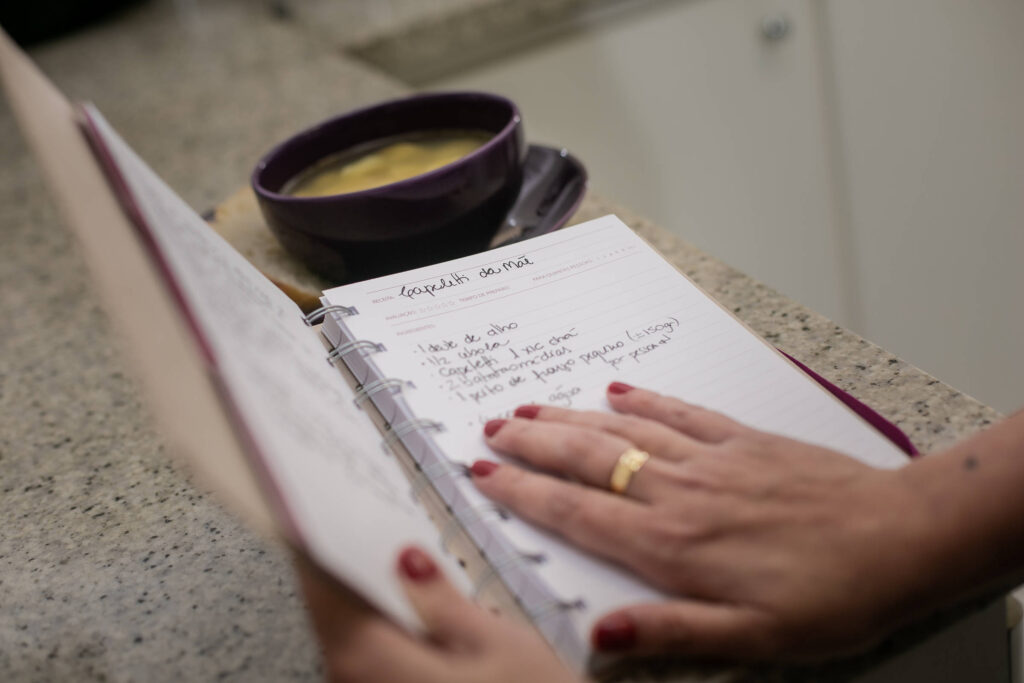 Seu caderno de receitas, como o da maioria das mães daquele tempo, era uma mistureba de anotações e recortes de impressos que vinham de revistas e embalagens de alimentos.