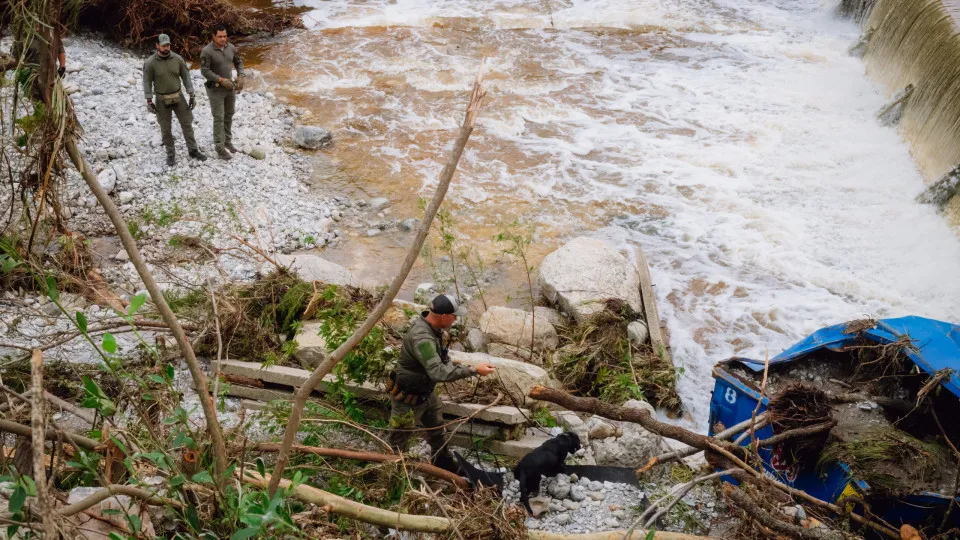 Os agentes de resgate usam helicópteros, barcos e ‘drones’ para procurar vítimas e resgatar pessoas presas em árvores e em acampamentos isolados por estradas destruídas pela água. As autoridades disseram que mais de 850 pessoas foram resgatadas nas primeiras 36 horas.