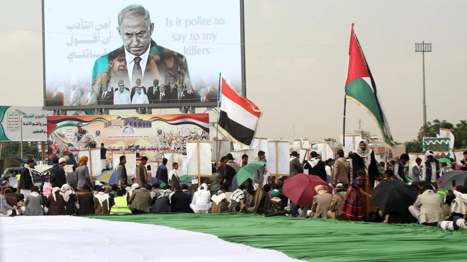 Os hutis do Iêmen, que frequentemente lançam mísseis balísticos e drones contra Israel em atos que dizem ser de solidariedade ao “massacre” em Gaza, fazem parte da aliança informal anti-Israel conhecida como “Eixo da Resistência”, que também inclui os palestinos do Hamas, o Hezbollah do Líbano e várias milícias apoiadas por Teerã.