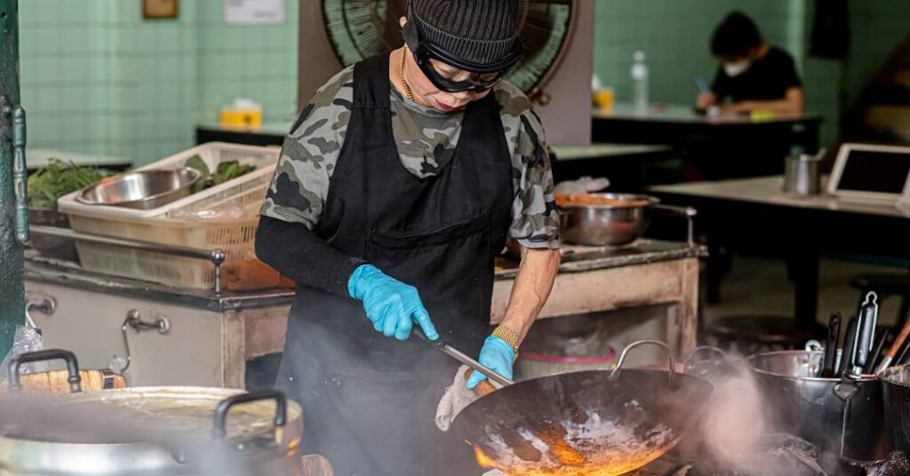 A performance fica por conta da chef Supina Junsuta – apelidada de Jay Fai, daí o nome do restaurante –, uma simpática senhora conhecida por sempre estar vestindo seu avental e óculos de ski para se proteger. O estabelecimento já era bem conhecido: o Jay Fai aparece em A Cook’s Tour, série de Anthony Bourdain. Mas a clientela explodiu após o reconhecimento internacional em 2018, a ponto de ganhar um episódio próprio no seriado Street Food Asia, disponível na Netflix.