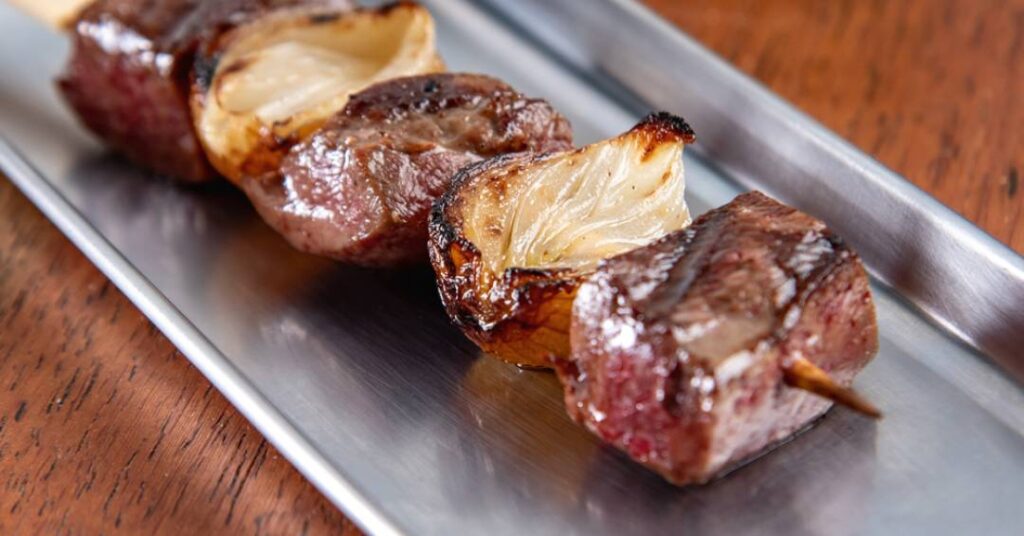 Tem pasteizinhos de botequim, porém de queijo de cabra e cogumelo shiitake (R$ 21,00 duas unidades). E canapé, mas com base de palmito pupunha, anchova da Cantábria e vinagrete de jerez (R$ 23,00, duas unidades). Os espetos também têm vez. Aparecem em versões como coração bovino tenro com minicebola (R$ 18,00).