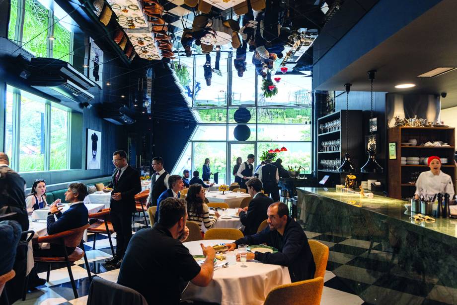 Pequeno e charmoso, Jojo é o mais recente projeto do franco-brasileiro Erick Jacquin inaugurado em parceria com o sócio Orlando Leone há um mês. O nome escolhido é também o apelido do pai do chef, René Jacquin, a quem ele presta uma homenagem. Embora disponha de uma cozinha aberta como o Les Présidents, o no térreo do W Hotel, nada tem a ver com a casa monumental dos Jardins. Navega-se aqui pelas águas de um mar de sutilezas — sem medo de errar, o lugar que nem bem abriu as portas já é o melhor endereço de pescados da cidade. Nas duas visitas que fiz, peixes e frutos do mar foram muito bem tratados. Logo na chegada, fui recebido com um delicioso amuse bouche que se repetiu em ambas as ocasiões, um ceviche de robalo com caju fresco e pimenta-dedo-de- -moça, discreta, mas presente. Das entradas, a mais impactante pela explosão de delicadeza é a flor de abobrinha recheada de musse de linguado e salmão levemente defumados em emulsão de champanhe e ovas de salmão (R$ 155,00). Nessa mesma linha, o ravióli de lagostim beira o sublime pela delicadeza da massa e pelo molho do próprio crustáceo com vinho Sauternes e gengibre (R$ 190,00). Mais marcante, a sopa de peixe, no caso um robalo mais cubos de camarão, é aromatizada com açafrão e completa-se com cenourinha, minimilho e alho-poró tostados (R$ 130,00). Feito ao forno com a pele, o filé de robalete de cozimento perfeito vem banhado por emulsão de champanhe e na companhia de erva-doce cozida. Outro primor é a composição de quatro camarões assados com alho- -poró e azeite de ervas (R$ 310,00). No mil-folhas (R$ 65,00), o creme pâtissière do recheio rescende a baunilha do Taiti. É apenas excelente. Esses pratos podem ser apreciados em um menu degustação por R$ 940,00, às vezes com pequenas variações. Há lembrar de um nome fundamental: o chef-executivo Ronaldo Villar, que toca a cozinha com uma equipe afinada. Também conta pontos o atendimento acolhedor capitaneado pelo maître Reginaldo Shimizu Araújo.