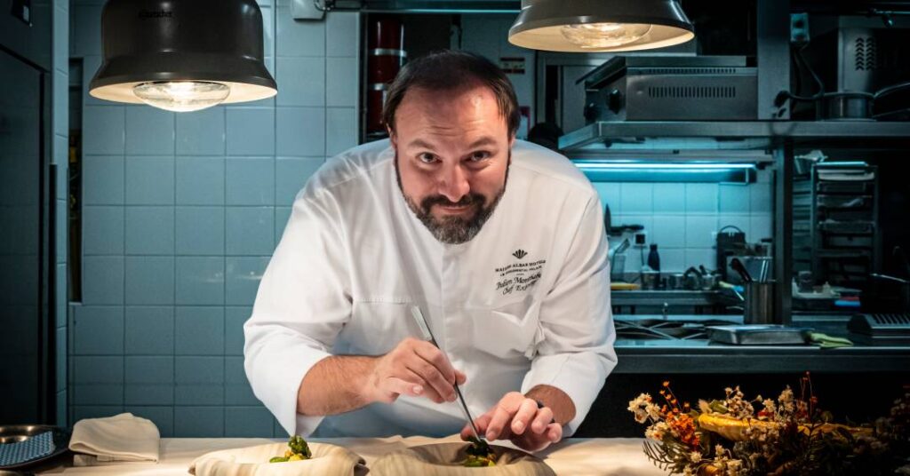 Há quase sete anos, o francês Julien Montbabut fechou seu restaurante estrelado em Paris para se aventurar por terras portuguesas. Junto com a mulher – a chef de pâtisserie Joana Thony-Montbabut – e seus dois filhos, fez do norte do país a sua casa. Apaixonado pela qualidade dos ingredientes, Julien coleciona dezenas de pequenos produtores de excelência de norte a sul – e seu menu degustação no restaurante Le Monument é uma ode ao que há de melhor em terras lusas, com grande influência do mar.