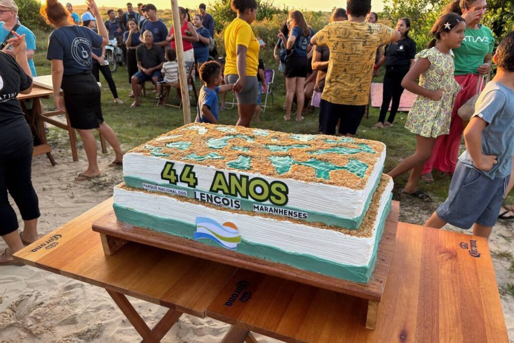 Na noite da última segunda-feira (2), o Parque Nacional dos Lençóis Maranhenses comemorou seus 44 anos de criação com uma festa das comunidades tradicionais que vivem no local e ao redor dele, e com um presente inusitado, vindo do céu.