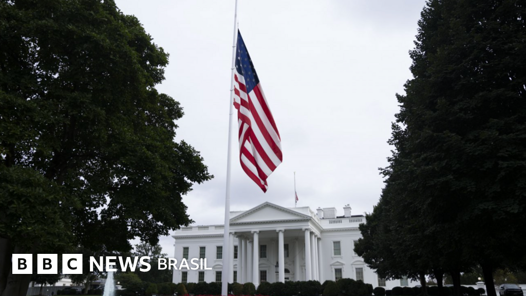 Legenda da foto, Bandeira foi colocada a meio-mastro na Casa Branca após morte de Charlie Kirk