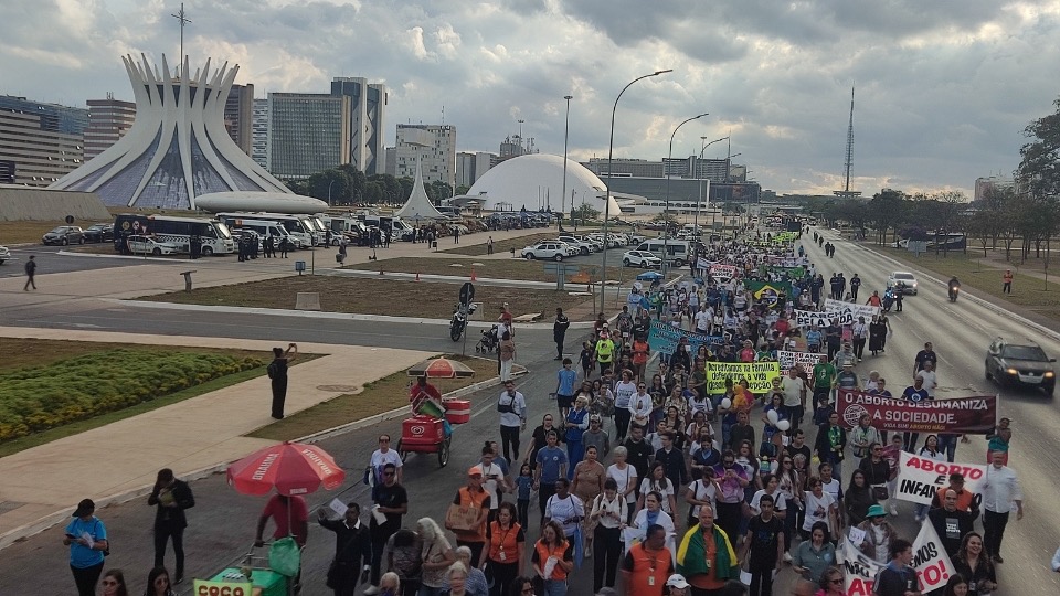 O evento foi marcado por faixas, orações, discursos e músicas que reforçavam a defesa da vida “desde a concepção”. A marcha seguiu em direção ao Congresso Nacional, onde líderes do movimento entregaram manifestos e reafirmaram sua oposição a qualquer tentativa de legalização do aborto.