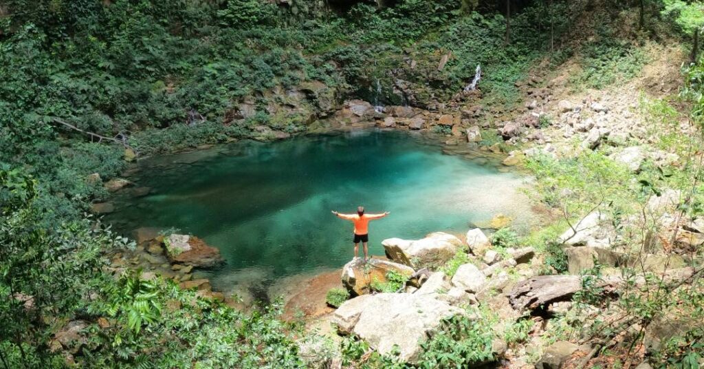 O caminho até lá consiste em uma trilha de 12 km de extensão de dificuldade médio-difícil. Sim, a chegada ao paraíso exige passar por algumas provações, como subidas íngremes, travessias de riachos e rochas escorregadias – a companhia de um guia é obrigatória. A recompensa ao fim do trajeto é um belíssimo poço de água azulada em um cenário paradisíaco.