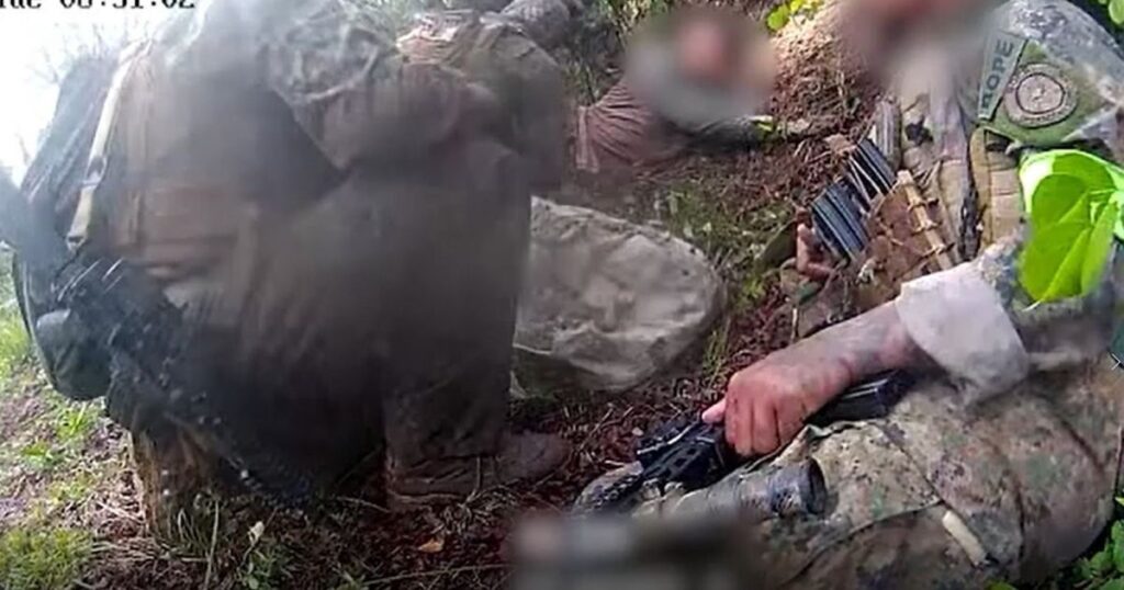 Em um dos vídeos divulgados pelo governo estadual do Rio de Janeiro, é possível ver o cabo Oliveira, do Bope (Batalhão de Operações Policiais Especiais) ferido na coxa esquerda após ser alvejado durante troca de tiros com membros do Comando Vermelho.