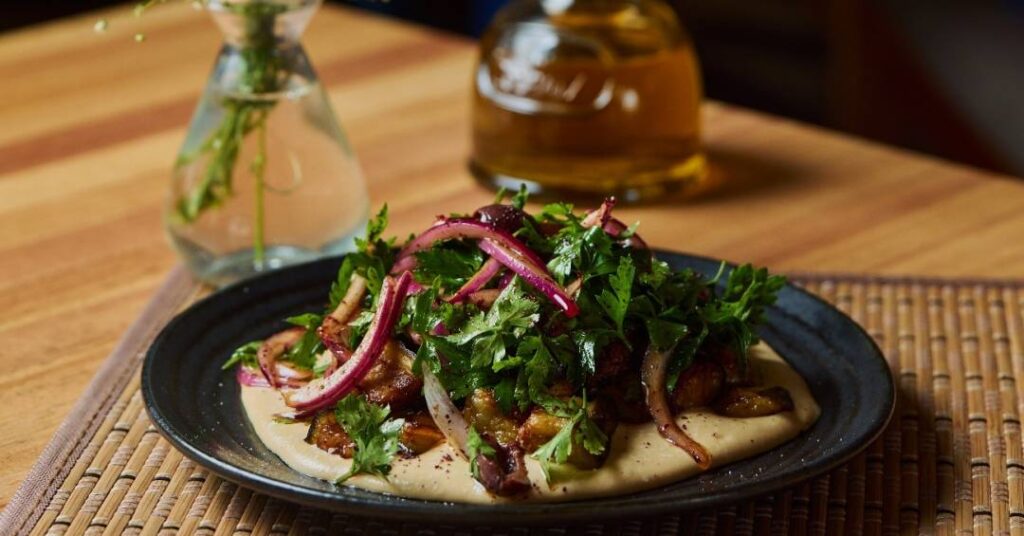 O cardápio traz nas entradas pedidas como a dolmadákia (R$ 61,00), variação do conhecido charutinho de folhas de uva recheado de arroz, carne bovina e especiarias, e um malabarismo no campo das invenciones, o greek ceviche (R$ 79,00), feito de peixe, cebola-roxa, hortelã, pimenta-dedo-de-moça, esferas de melancia e leite de tigre saborizado com ouzo. Bom, pelo menos, anatolí (R$ 69,00) batiza uma berinjela com tahine, salsa, cebola-roxa, azeitona, azeite e summac com pão pita.