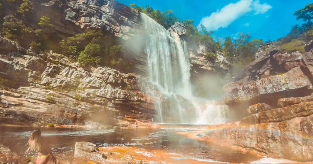 A Cachoeira de Curimataí, cravada no pé da Serra do Espinhaço, tem um intenso volume de água que encanta antes de repousar num poço com cerca de 4 metros de profundidade. A cor escura da água deve-se à alta concentração de minerais e o mergulho em suas águas é muito relaxante.