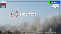 O vídeo verificado mostra grandes nuvens de fumaça perto da escola antes que o míssil Tomahawk apareça.
