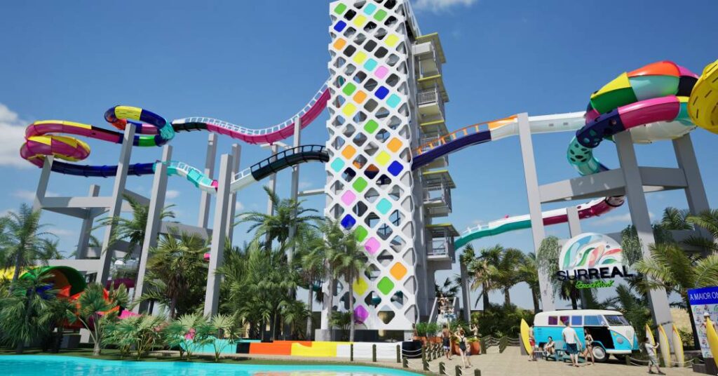 Inaugurado em março de 2025, o Surreal é inspirado nas manobras do surfe. Há elementos como quedas que remetem ao big drop, espirais que relembram os cutbacks e efeitos visuais que simulam um floater. Visitantes em boias duplas são impulsionados por jatos d’água de até 42 km/h ao longo de um percurso de 77 segundos repleto de subidas, curvas e descidas que imitam os movimentos das ondas. Pelo caminho, há uma queda de sete metros, espirais e trechos translúcidos que aumentam a adrenalina.