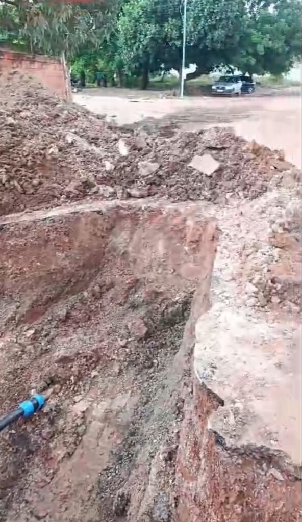 Moradores do bairro Dr. Fábio Leite II, em Cuiabá-MT, estão indignados com um enorme buraco deixado na Rua Universal após uma obra realizada no local. Além de dificultar a passagem de veículos e pedestres, o problema tem causado sérios prejuízos às famílias, especialmente durante as chuvas, quando a água invade as casas.