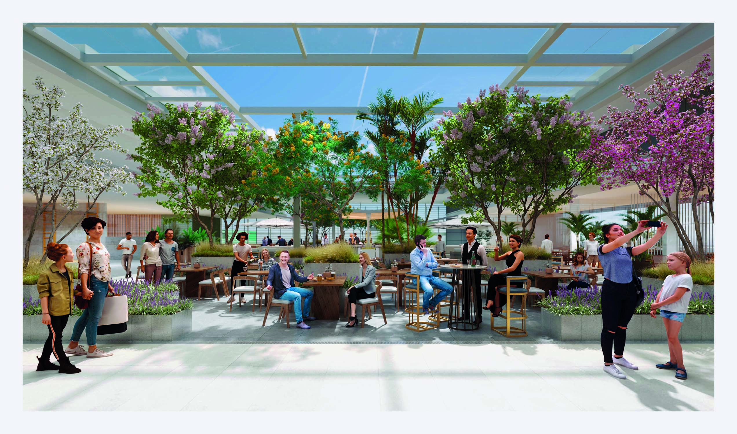 Além de um novo pool de lojas, o centro de compras do Brooklin conta com oito novos restaurantes, todos com inauguração marcada para 18 de março. Esse hub especializado fica em um cenário aprazível, um rooftop ornamentado com espécies da flora brasileira e coberto por um teto de vidro, na área do estacionamento do quarto piso.