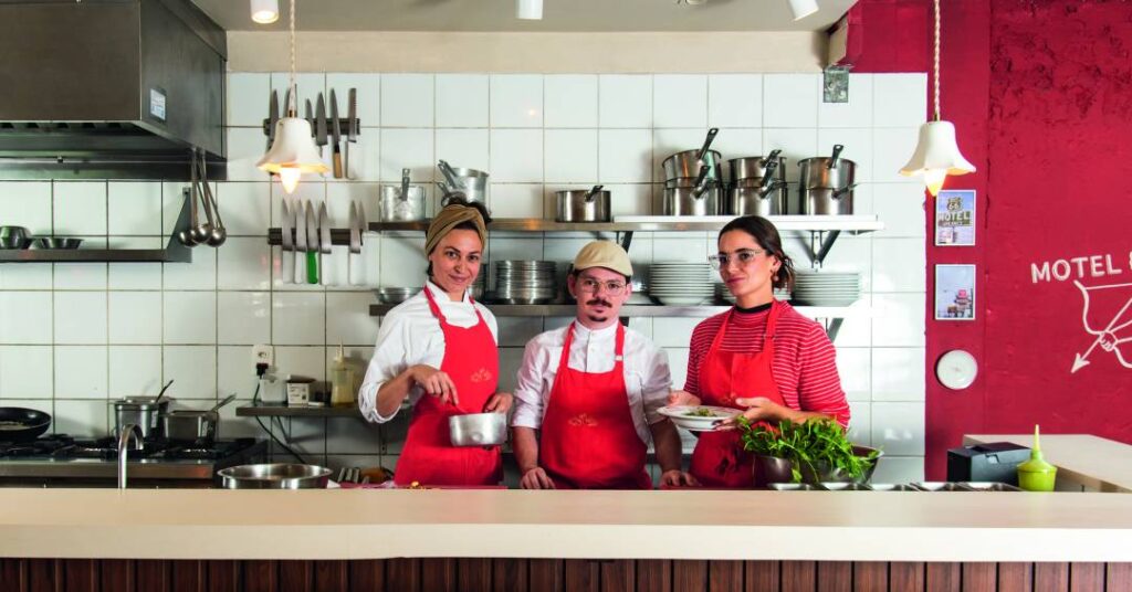 A chef Renata Vanzetto é inquieta e ligada em 220. Seu tino comercial a levou a ganhar o título de restauratrice do ano pelo COMER & BEBER 2021. A vocação para negócios a fez por abaixo o Ema, a casa de pretensões mais gastronômicas nascida em 2013 e que desapareceu para dar lugar, em abril passado, ao Motel Comidas & Cocktails — sim, você não leu errado: é mais um desses nomes divertidinhos escolhido por ela. A cozinheira tinha feito movimento parecido um pouco antes com o Mico, de vida breve, hoje ocupado pelo blockbuster Mamma Vanzetto. O Motel virou uma sensação e imanta o público para o piso superior do bar MeGusta, num pedaço da Bela Cintra onde se concentram muitos negócios de Renata e sócios. Como a fila é longa, recomendo reservar para não mofar na espera. Não espere pratos de motel. As receitas são vanzettianas, executadas por Tassien Barban, Cony Pinheiro e Lucas Jaen. Ou seja, “limãozudas”, “coentrudas”… Mas, aviso: é melhor se concentrar nos beliscos e coquetéis. Depois de secar um refrescante california dreams (pisco, limão-siciliano, pepino macerado, melão e Aperol; R$ 45,00), vá de caju amigo (R$ 68,00), não o drinque, mas o crudo de peixe em molho picante e carregado no limão com suco de caju que ainda aparece na brasa e em castanha com muito coentro e cebola-roxa. Sandy wich (R$ 64,00) é um ótimo minissanduíche de costela, uma versão da carne louca mergulhada em molho rôti, com creme de agrião e batata palha. Tem ainda a batata ao motel (R$ 36,00) no estilo ao murro dos lusos regada por purê de queijo meia cura e cebola caramelada. É crocante, viciante. Os pratos principais não desapontam, mas ainda merecem ajustes da chef de alto nível. Quase nos trinques, o arroz safado (R$ 84,00) é preparado com tinta de lula e as bichinhas fritas, estas com sal em demasia na minha visita. Completa-se com vinagrete, aïoli e folhas de shissô. Um primor é a sobremesa do confeiteiro Alessandro Paiva batizada de ménage de julieta, juliete e romeu (R$ 45,00), uma torta basca com calda de goiabada e cubos da fruta fresca.